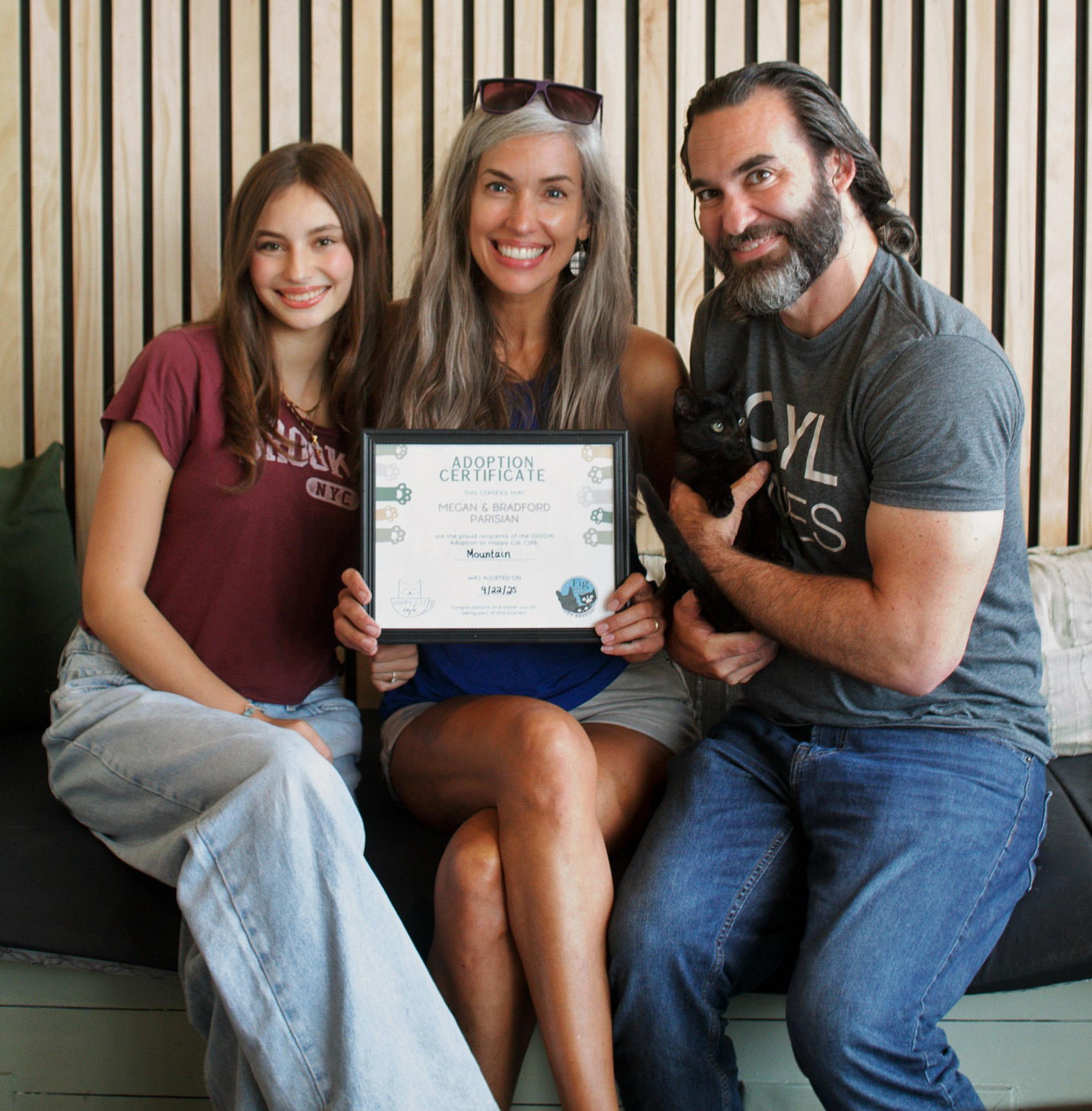 For the Parisian family (Charlotte, Megan, and Brad), Mountain was more than a milestone—he was the missing piece. Their current cat had been struggling with the loss of a longtime feline companion, and they knew it was time to welcome a new friend. When they met Mountain, the connection was instant.